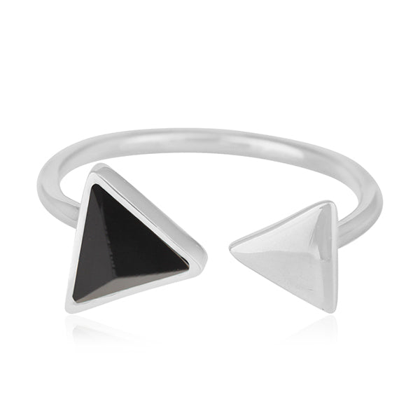 Anillo de plata esterlina 925 con ónix negro triangular. Hecho a mano.