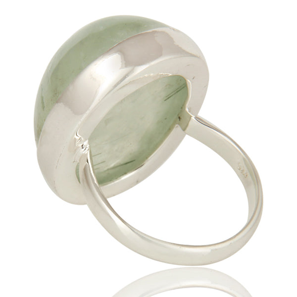 Anillo de plata esterlina 925 con prehnite. Ancho aprox. 24mm. Hecho a mano.