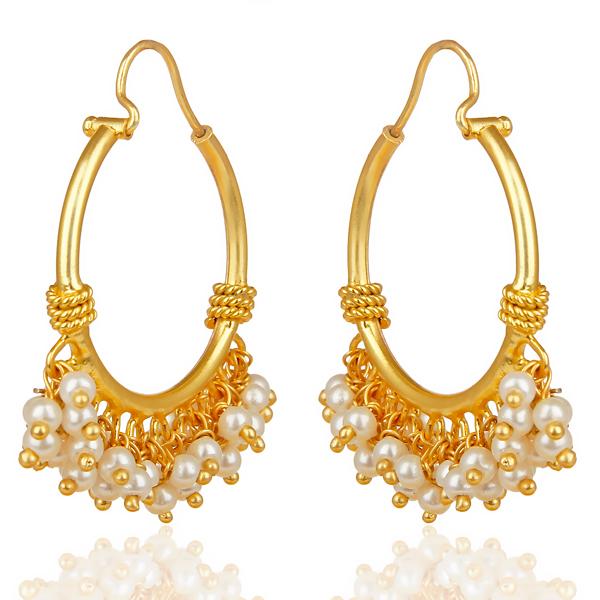 Aros de latón, bañados en oro amarillo 18kt. con perlas, cierre a presión. Largo aprox.: 40 mm. Ancho aprox.: 29 mm. Hecho a mano. Latón: aleación de cobre y zinc.