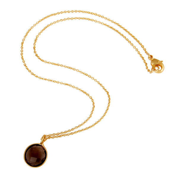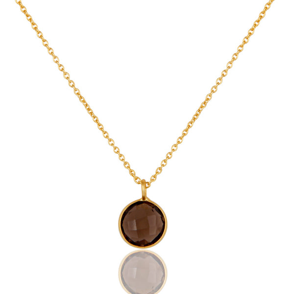 Cadena de plata bañada en oro con dije de cuarzo ahumado