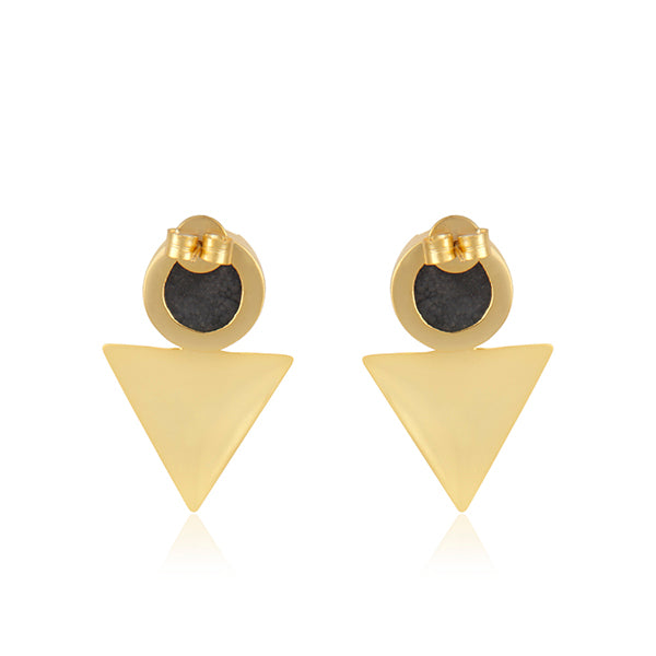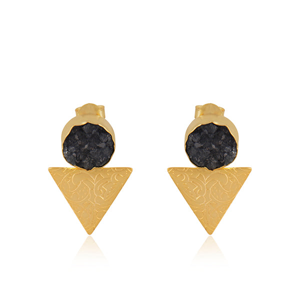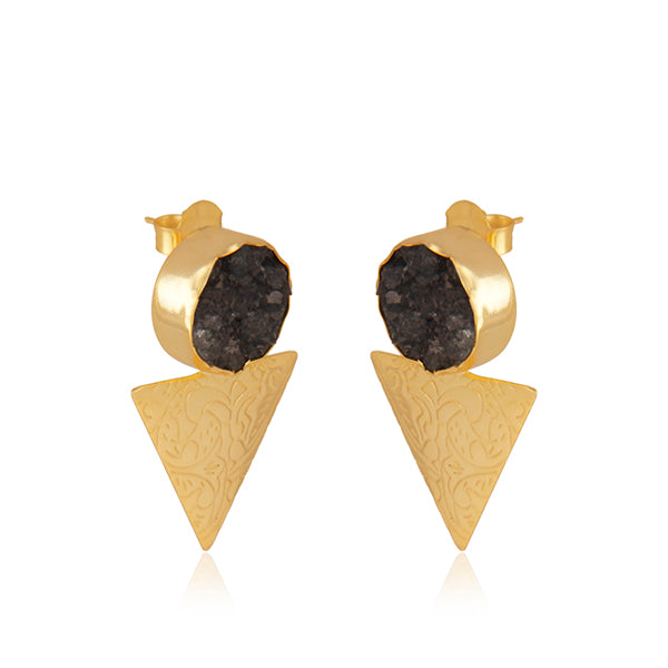 Caravanas de latón, bañadas en oro amarillo con druzy negra, cierre a presión. Largo aprox.: 42 mm. Ancho aprox.: 28 mm. Hecho a mano. Latón: aleación de cobre y zinc.
