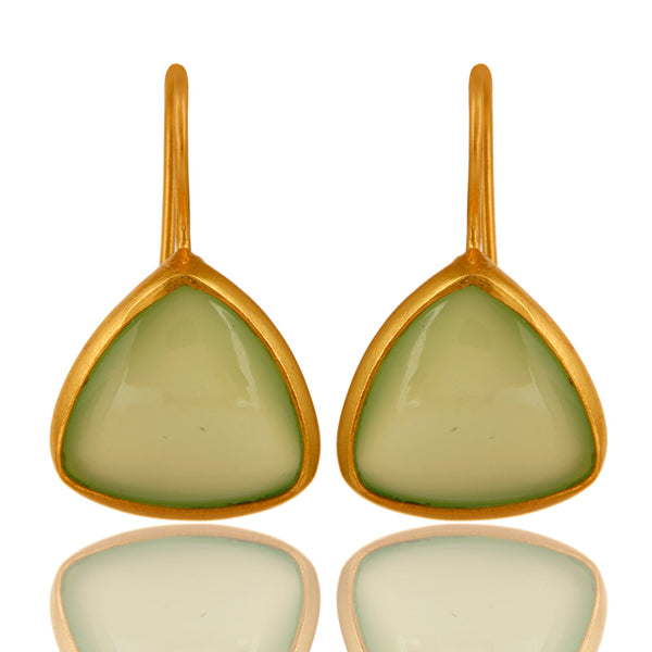 Caravanas de plata esterlina 925, bañadas en oro amarillo con calcedonia verde. Largo aprox.: 28mm. Ancho aprox.: 16mm. Hecho a mano.