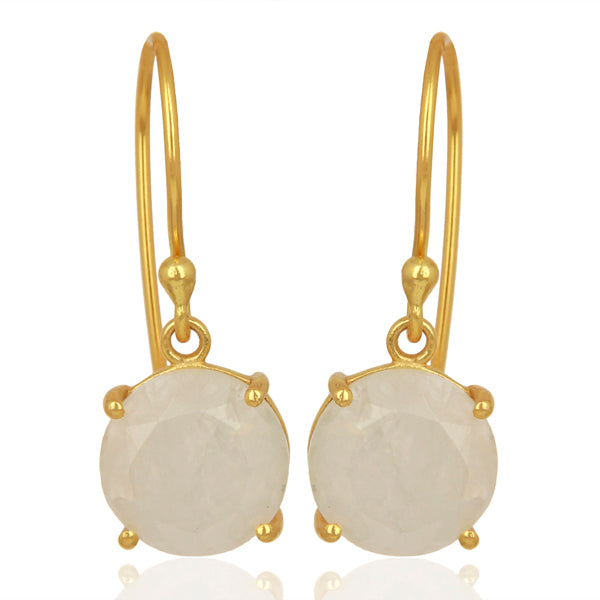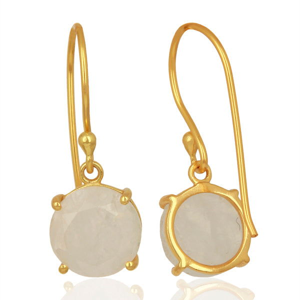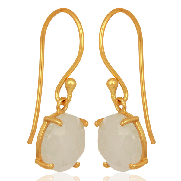 Caravanas colgantes de plata esterlina 925, enchapadas en oro amarillo 14kt. con piedra de la luna y cierre de gancho. Largo aprox.: 27mm. Ancho aprox.: 10mm. Hechas a mano.