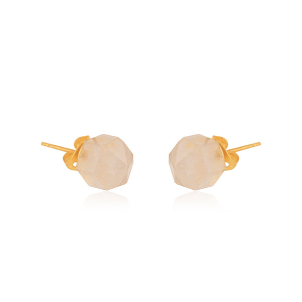 Caravanas de latón bañadas en oro con cuarzo rosa