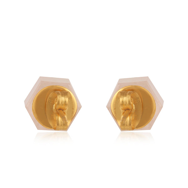 Caravanas de latón, bañadas en oro amarillo con cuarzo rosa hexagonal y cierre a presión. Largo aprox.: 8 mm. Ancho aprox.: 8 mm. Hecho a mano. Latón: aleación de cobre y zinc