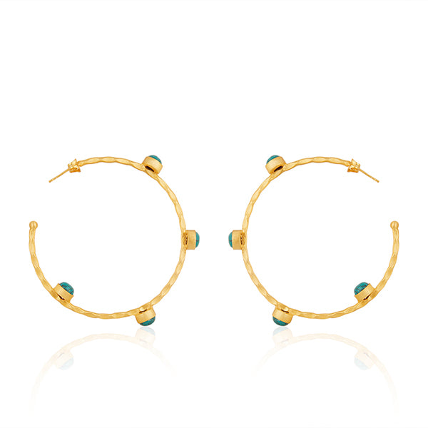 Aros de latón, bañados en oro amarillo con turquesa, cierre a presión. Largo aprox.: 58 mm. Ancho aprox.: 7 mm. Hecho a mano. Latón: aleación de cobre y zinc