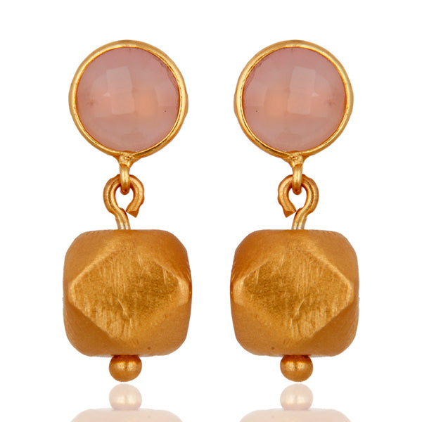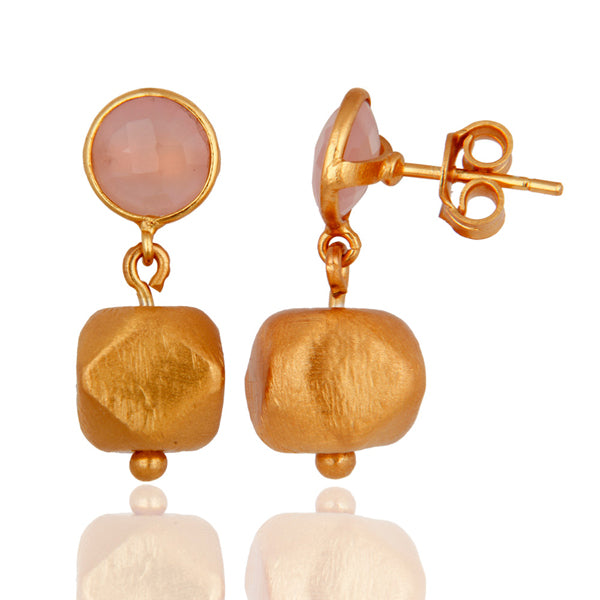 Caravanas de plata bañadas en oro con calcedonia rosada