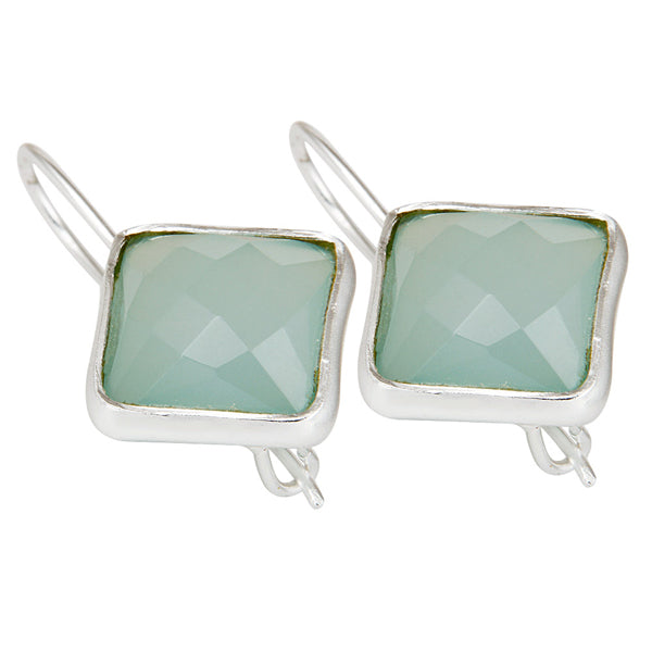 Caravanas de plata esterlina 925 con aqua calcedonia. Cierre de gancho. Hecho a mano.