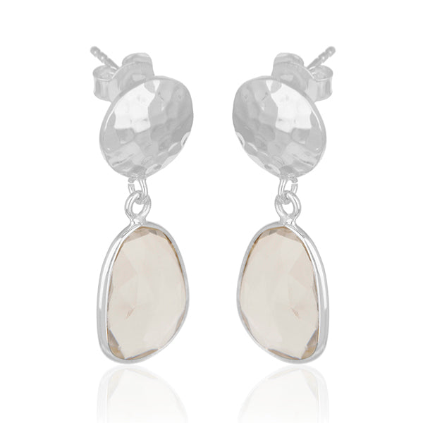Caravanas de plata esterlina 925, bañadas en rodio con cristal de cuarzo y cierre de gancho. Ancho aprox.: 11mm, alto aprox.: 30mm. Hecho a mano.