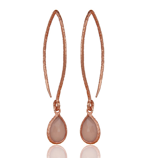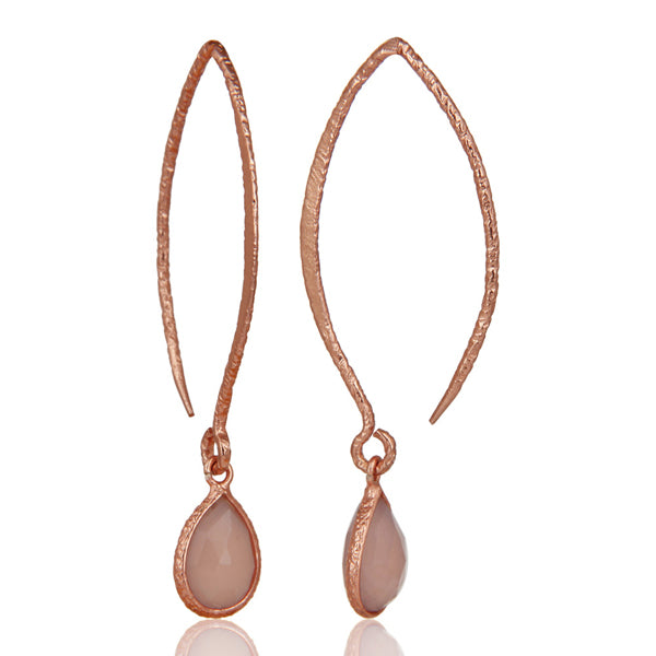 Caravanas de plata esterlina 925, enchapadas en oro rosa con cuarzo rosado. Ancho aprox.: 8mm, alto aprox.: 5cm. Hecho a mano.