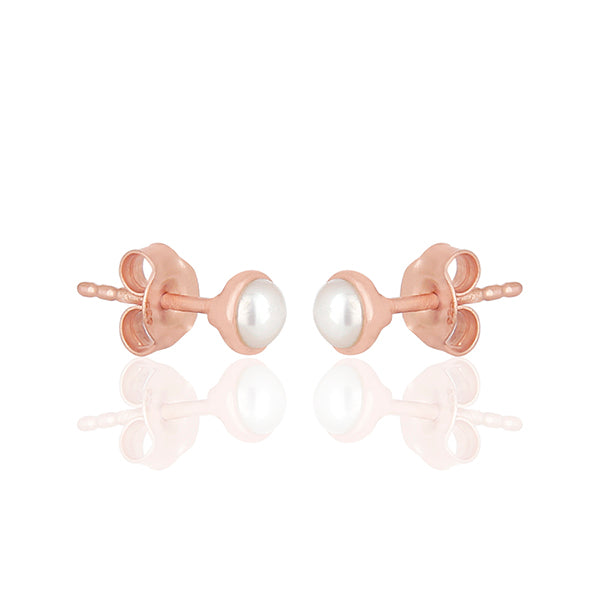 Caravanas de plata esterlina 925 banadas en oro rosa con perla, cierre a presion. Largo aprox.: 4 mm. Ancho aprox.: 4 mm. Hecho a mano.