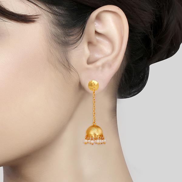 Caravanas de latón, bañadas en oro amarillo 14kt. con perlas, cierre a presión. Largo aprox.: 55 mm. Ancho aprox.: 15 mm. Hecho a mano. Latón: aleación de cobre y zinc.