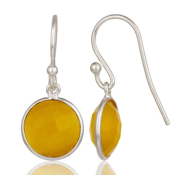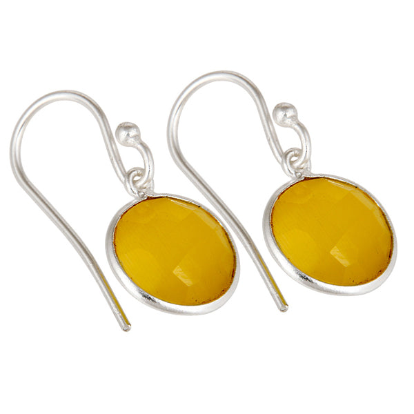 Caravanas de plata esterlina 925 con piedra de la luna amarilla. Largo aprox.: 14 mm. Ancho aprox.: 11 mm. Hecho a mano.