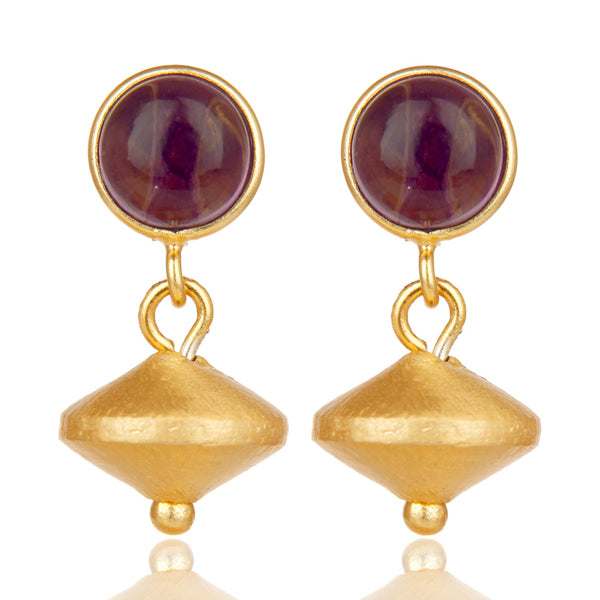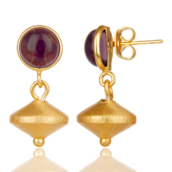Caravanas de latón, bañadas en oro amarillo con amatista, cierre a presión. Largo aprox.: 25 mm. Ancho aprox.: 12 mm. Hecho a mano. Latón: aleación de cobre y zinc.