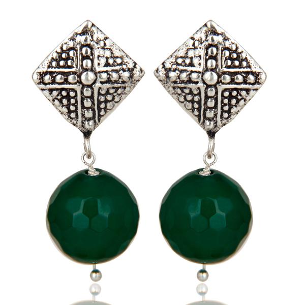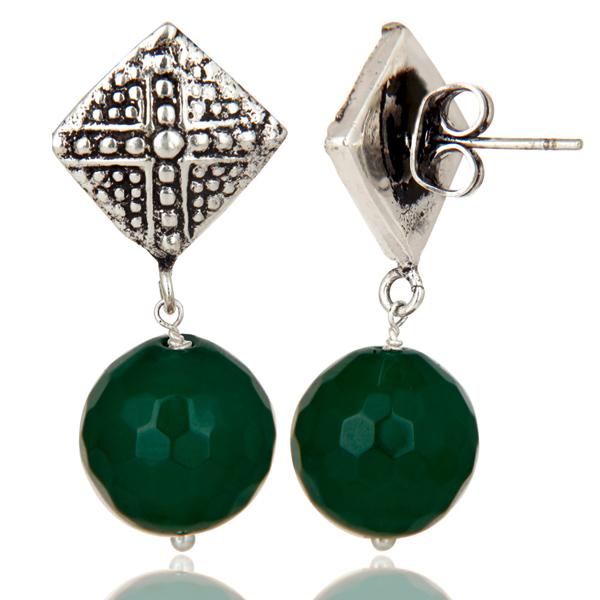 Caravanas de latón, bañadas en plata con onix verde, cierre a presión. Largo aprox.: 29 mm. Ancho aprox.: 14 mm. Hecho a mano. Latón: aleación de cobre y zinc.