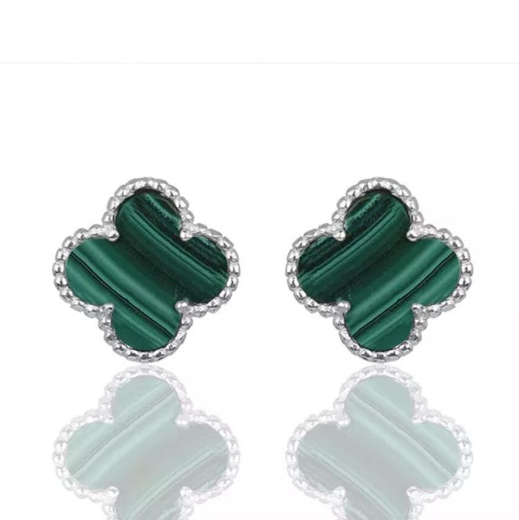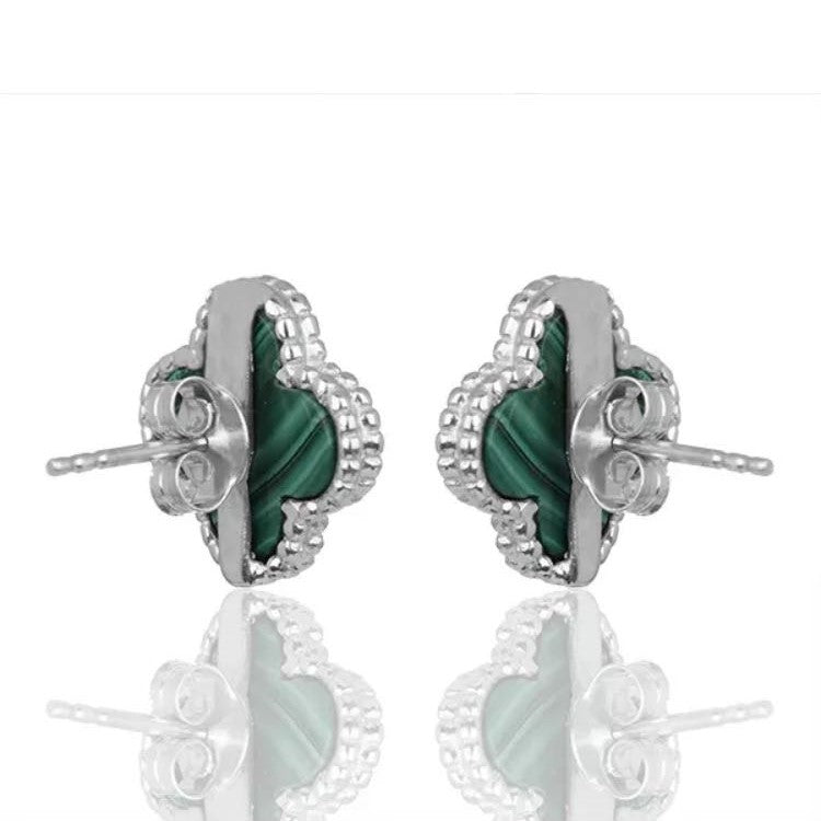Caravanas de plata esterlina 925 con malaquita y cierre presión. Diámetro aprox.: 1.4 cm.