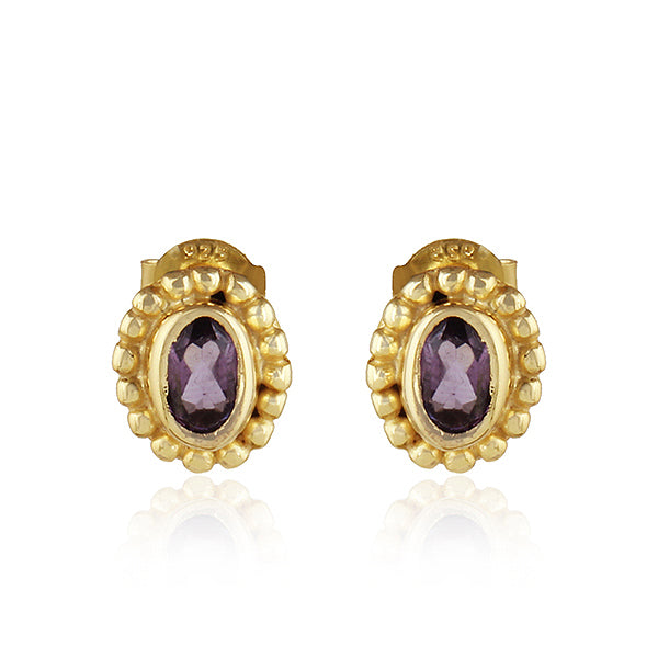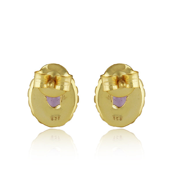 Caravanas de plata esterlina 925, bañadas en oro amarillo con amatista, cierre a presión. Largo aprox.: 10 mm. Ancho aprox.: 8 mm. Hecho a mano.