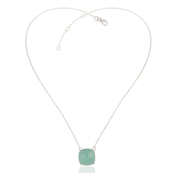 Collar de plata esterlina 925 banado en rodio blanco con dije de acqua calcedonia. Largo aprox.: 45,7 cm. Hecho a mano.