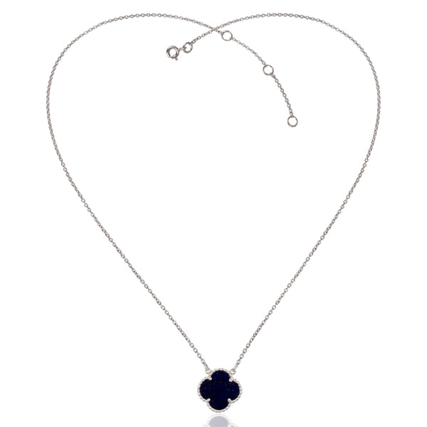 Collar de plata esterlina 925, banado en rodio blanco con dije de lapislazuli. Hecho a mano.